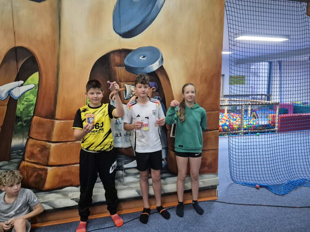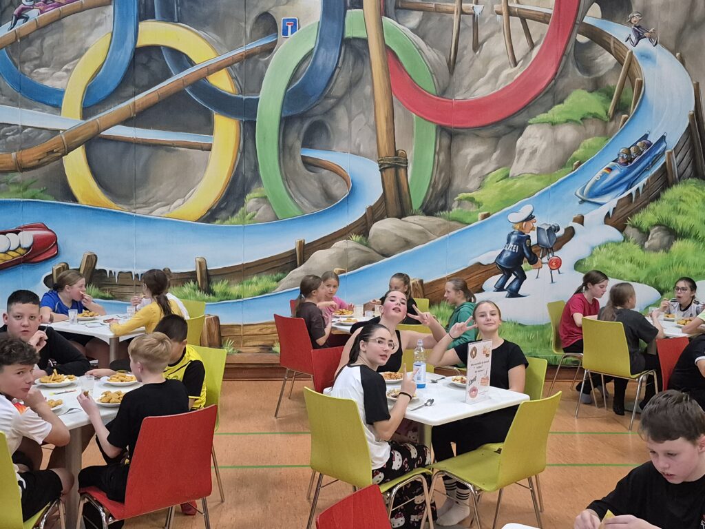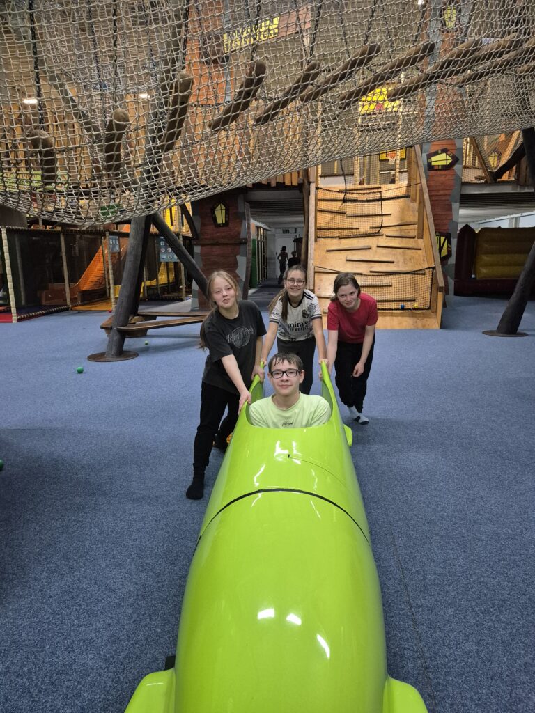 Am 21.11.2025 feierten die beiden 6. Klassen ihren Jahresabschluss mit einer aufregenden Übernachtung im Tobeland des Olympia Riesa. Gleich nach der Ankunft starteten wir mit einer Stunde freiem Spiel, in der sich alle so richtig austoben konnten. Anschließend stärkten sich die Schülerinnen und Schüler beim gemeinsamen Abendbrot, bevor es mit vielfältigen Aktivitäten weiterging.