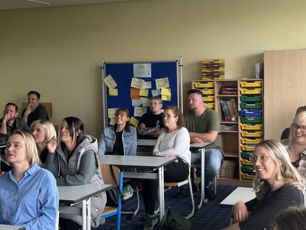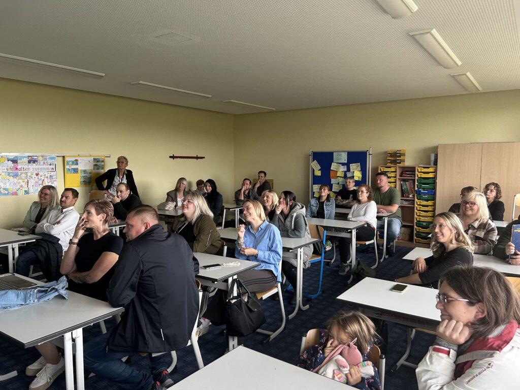 Über 20 ehemalige Schülerinnen und Schüler aus den drei damaligen Klassen waren erschienen. Los ging’s mit einem Rundgang durchs Schulhaus – für manche das erste Mal seit 20 Jahren. Entsprechend groß war das Staunen über den Anbau und die vielen technischen Neuerungen. Natürlich wurde auch in Erinnerungen geschwelgt, alte Fotos wurden bestaunt und Geschichten von früher lebten wieder auf. Mit dabei waren auch die beiden Klassenlehrerinnen, Frau Winter und Frau Leuschke. Und sogar der unverwechselbare Duft der Turnhalle hat das Wiedersehen noch ein Stück authentischer gemacht.