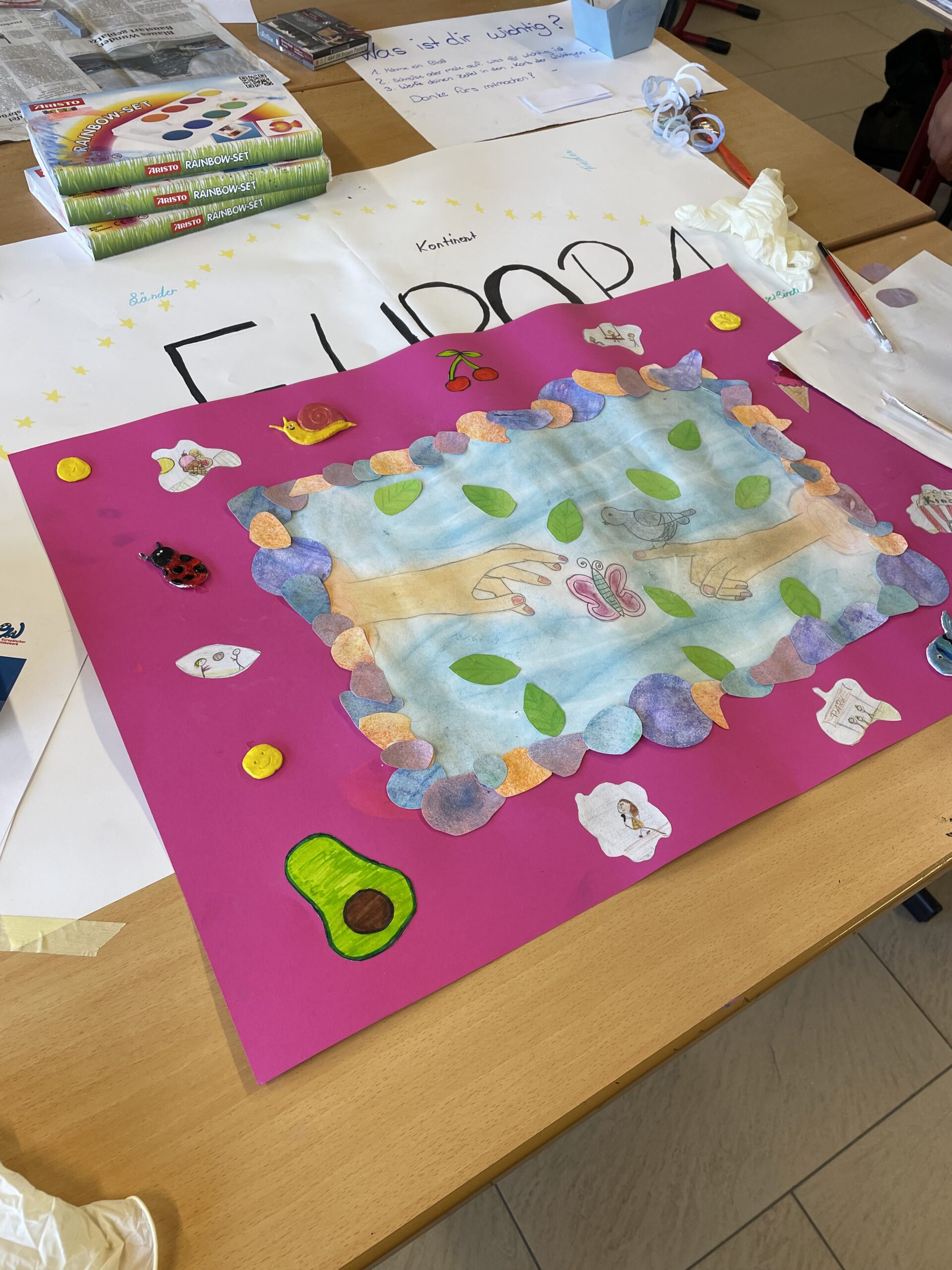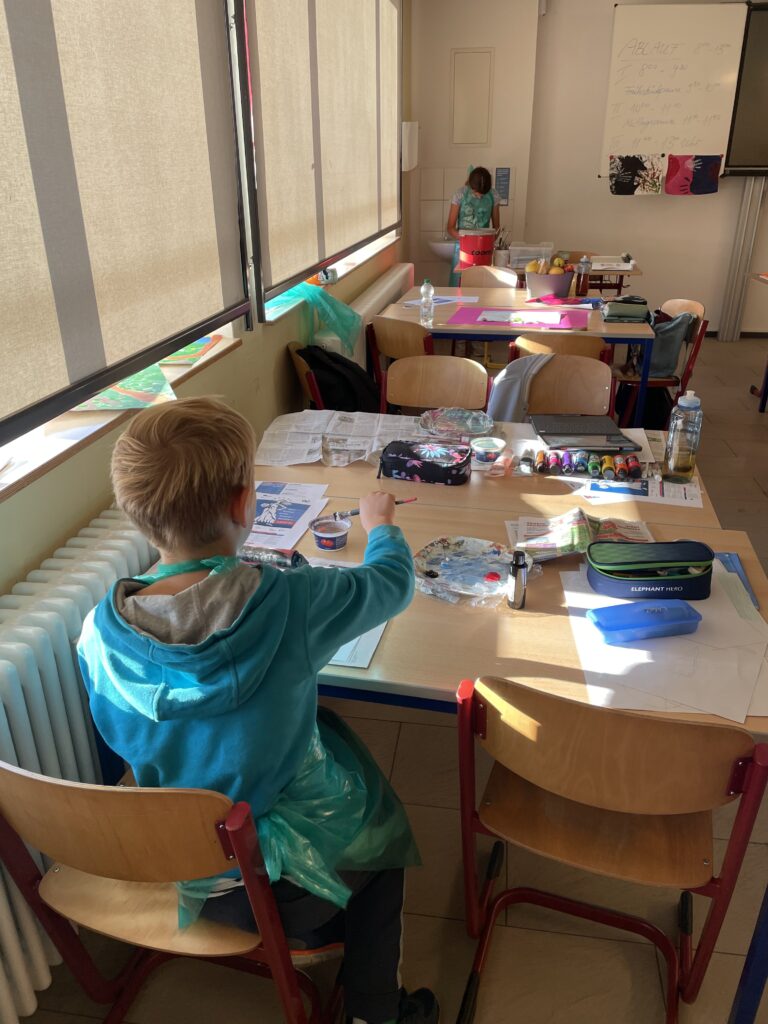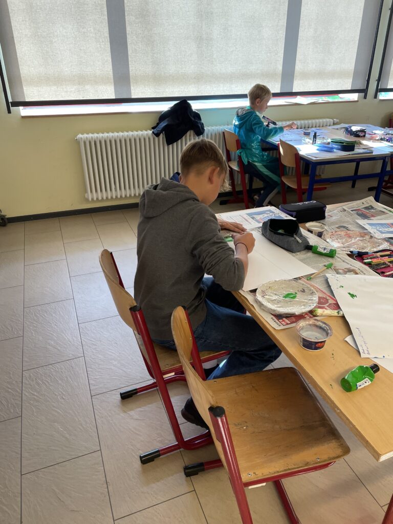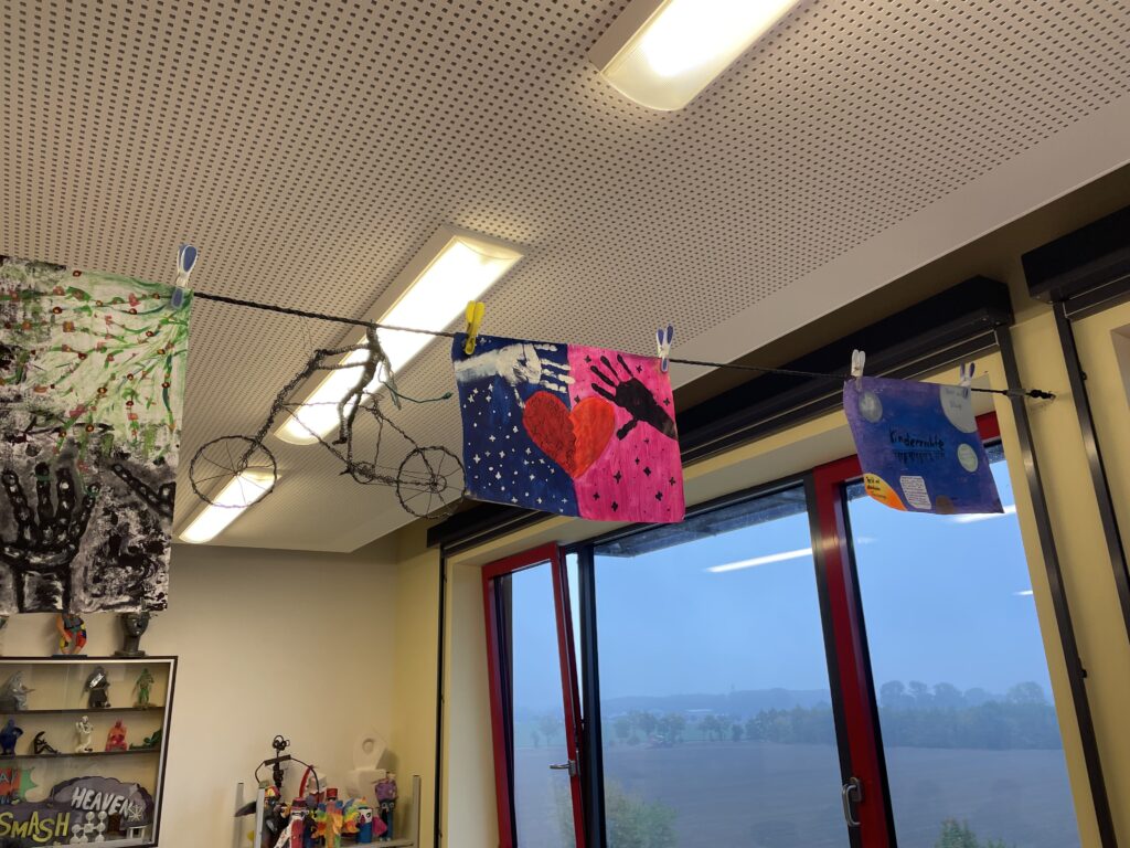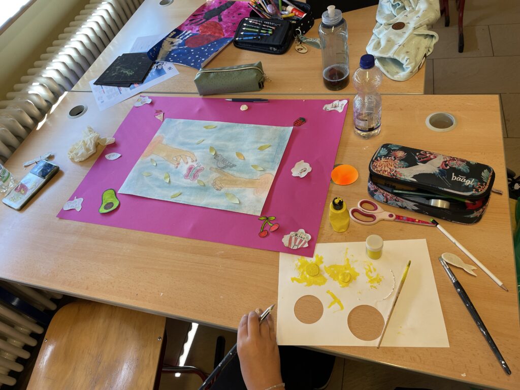 „Wir haben in der Projektwoche verschiedene Bilder zum Thema Kinderrechte gemalt – für einen europäischen Wettbewerb.“