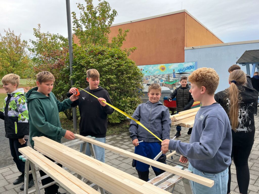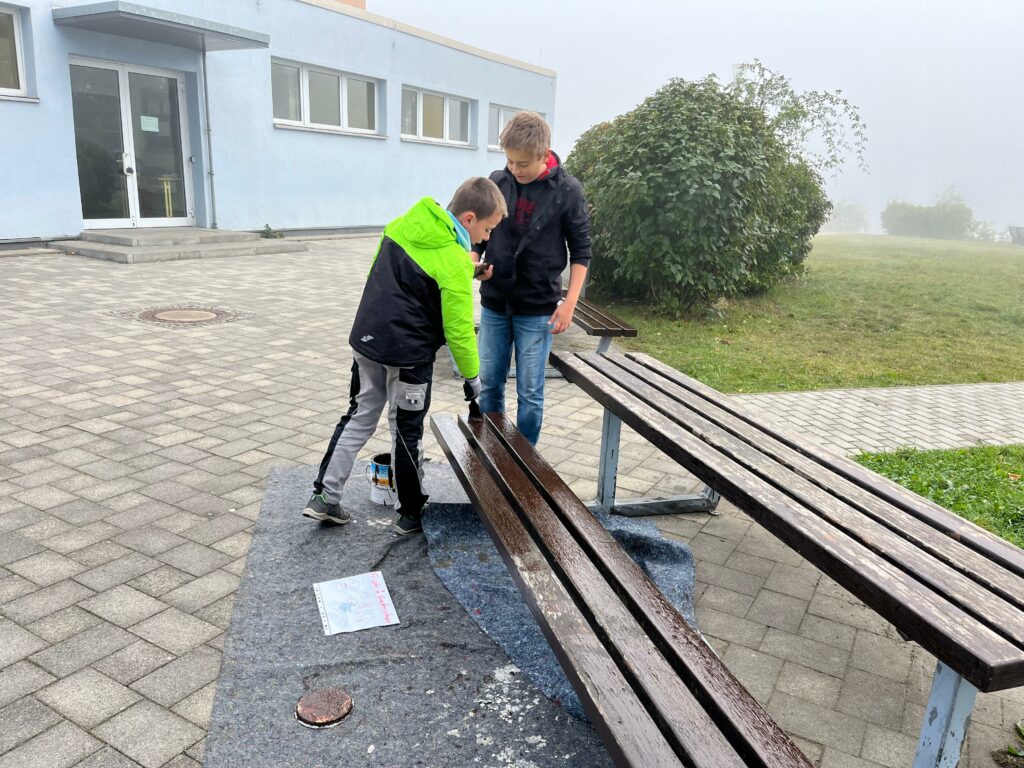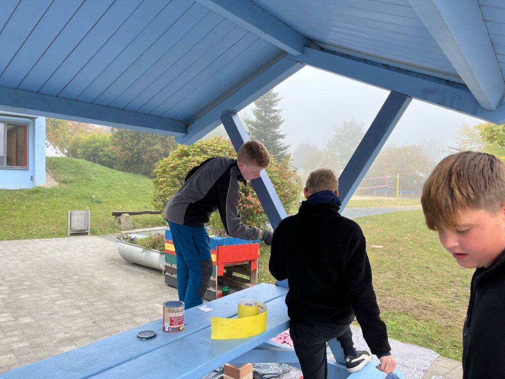 Am Donnerstag war der letzte Tag in der Projektwoche und wir reparierten die großen Bänke auf dem Schulhof.