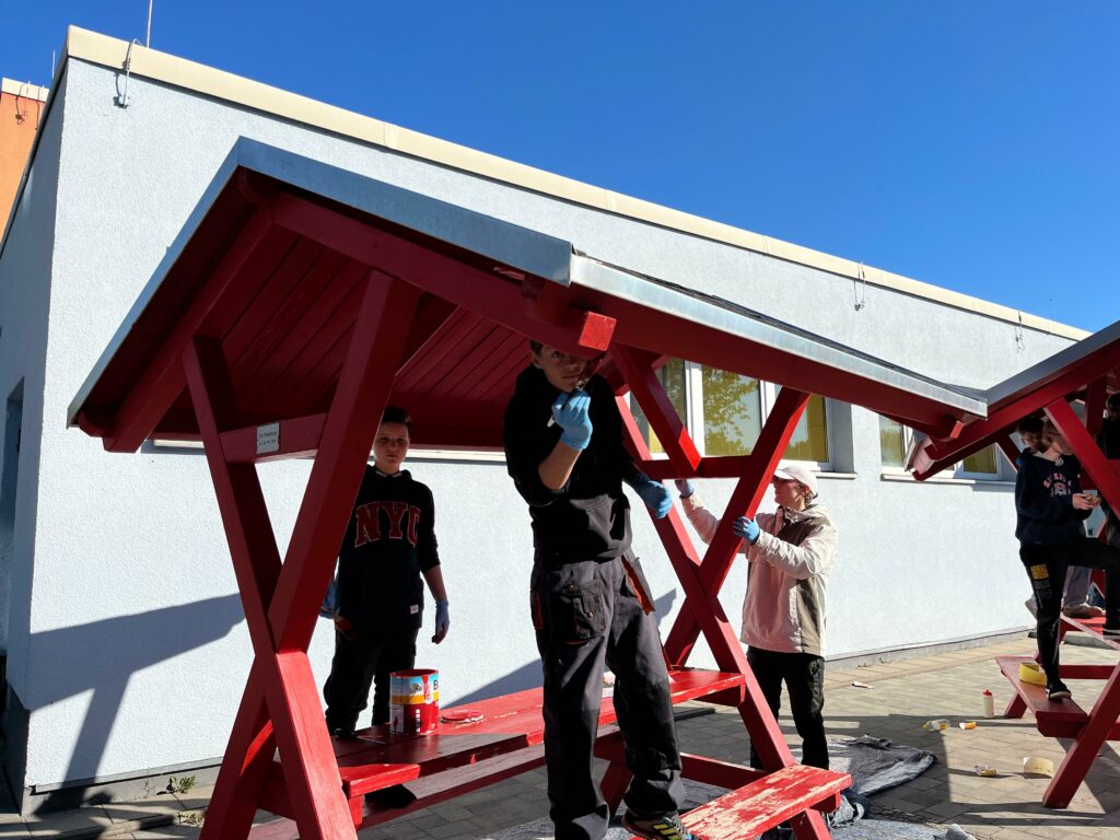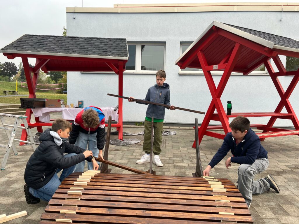 Wir haben die neuen Wellenbänke gebaut und die alten Bänke abgeschliffen und neu lasiert.