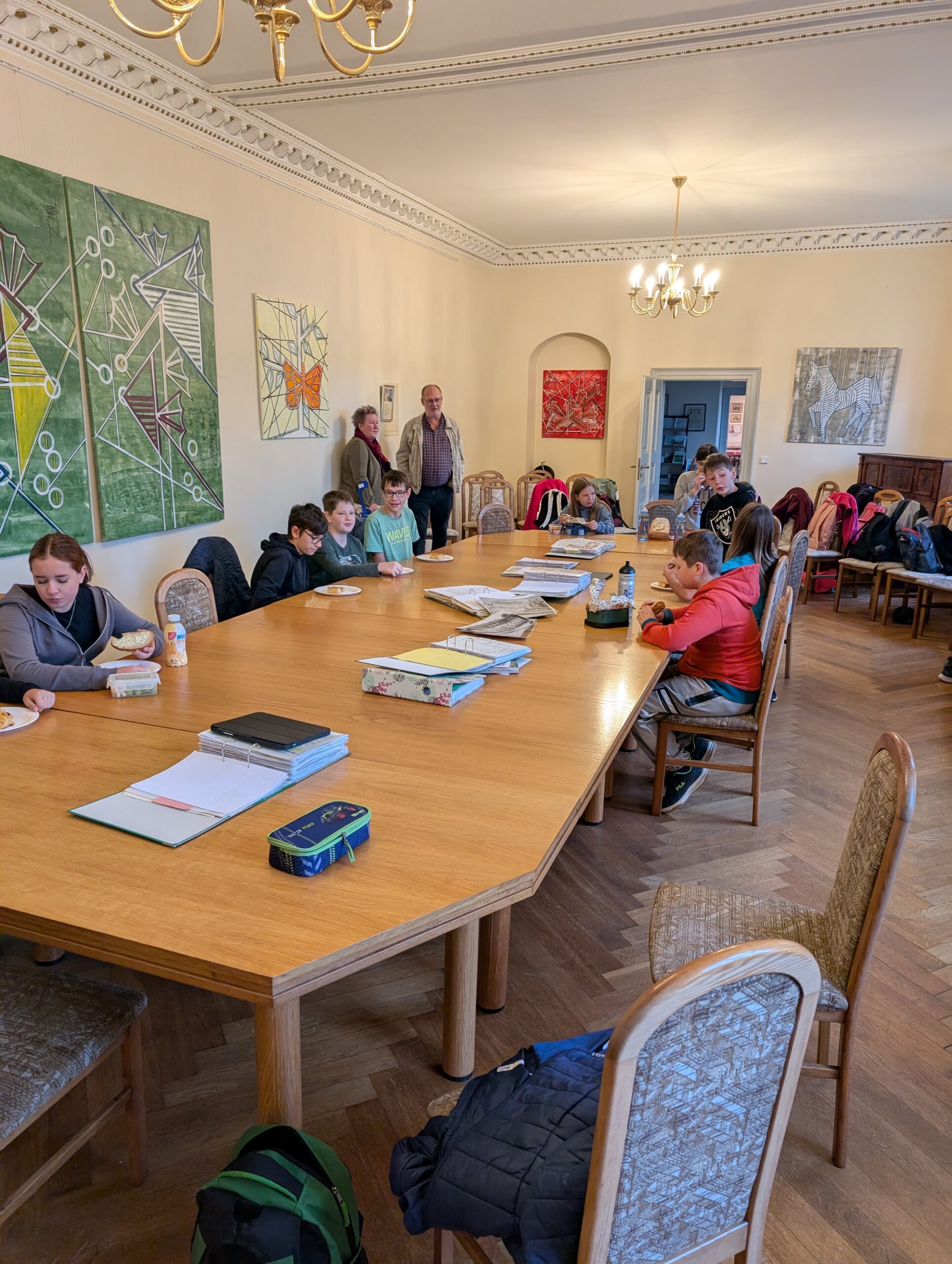 Mit einem mittelalterlich inspirierten Frühstück wurden die Schülerinnen und Schüler der Projektgruppe „Stauchitz im Wandel der Zeit“ von Frau Osladil und Herrn Rohm in der Heimatstube herzlich empfangen.